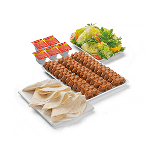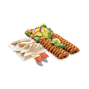 Göbek Marul, Mısır, Maydanoz, Nane, Salatalık Turşusu, Közlenmiş Biber, Mor Lahana, Ekşi Çiğ Köfte Sosu, Limon ve Çiğ Köfte Sosu